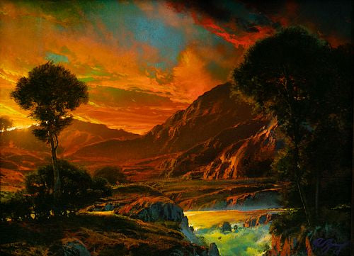 The work radiates warmth, nostalgia, and that unmistakable Terbush sense of grandeur. The saturated palette, dramatic clouds, and dreamlike color transitions make this an exceptional example of his signature style.